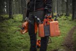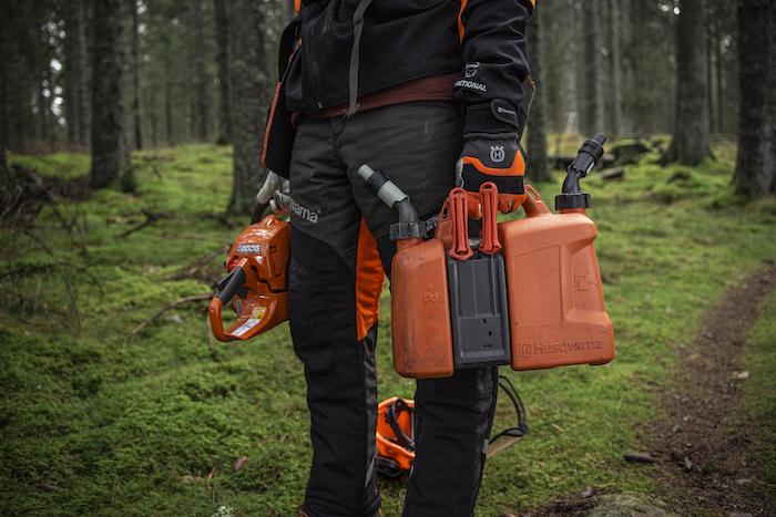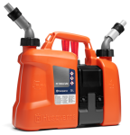 Bidon double, peut contenir 5L d’essence et 2,5L d’huile. Avec arrêt automatique de remplissage et système de blocage du bec verseur. Porte outils et niveaux visibles.